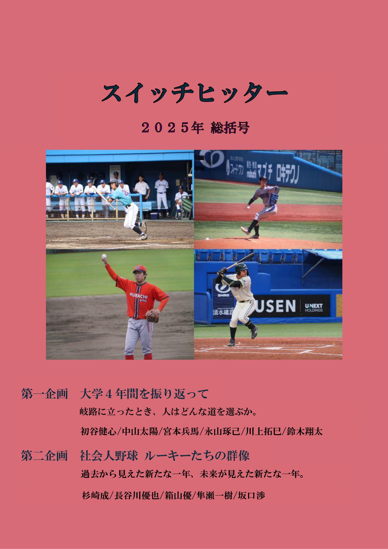 スイッチヒッター2025年総括号 2025年の大学野球と社会人野球を振り返る11本の記事が掲載されています。 人気企画「大学4年間を振り返って」と「社会人野球ルーキーたちの群像」が連載されています。 すべて、ここでしか読むことができない記事です。 ぜひお買い求めください。